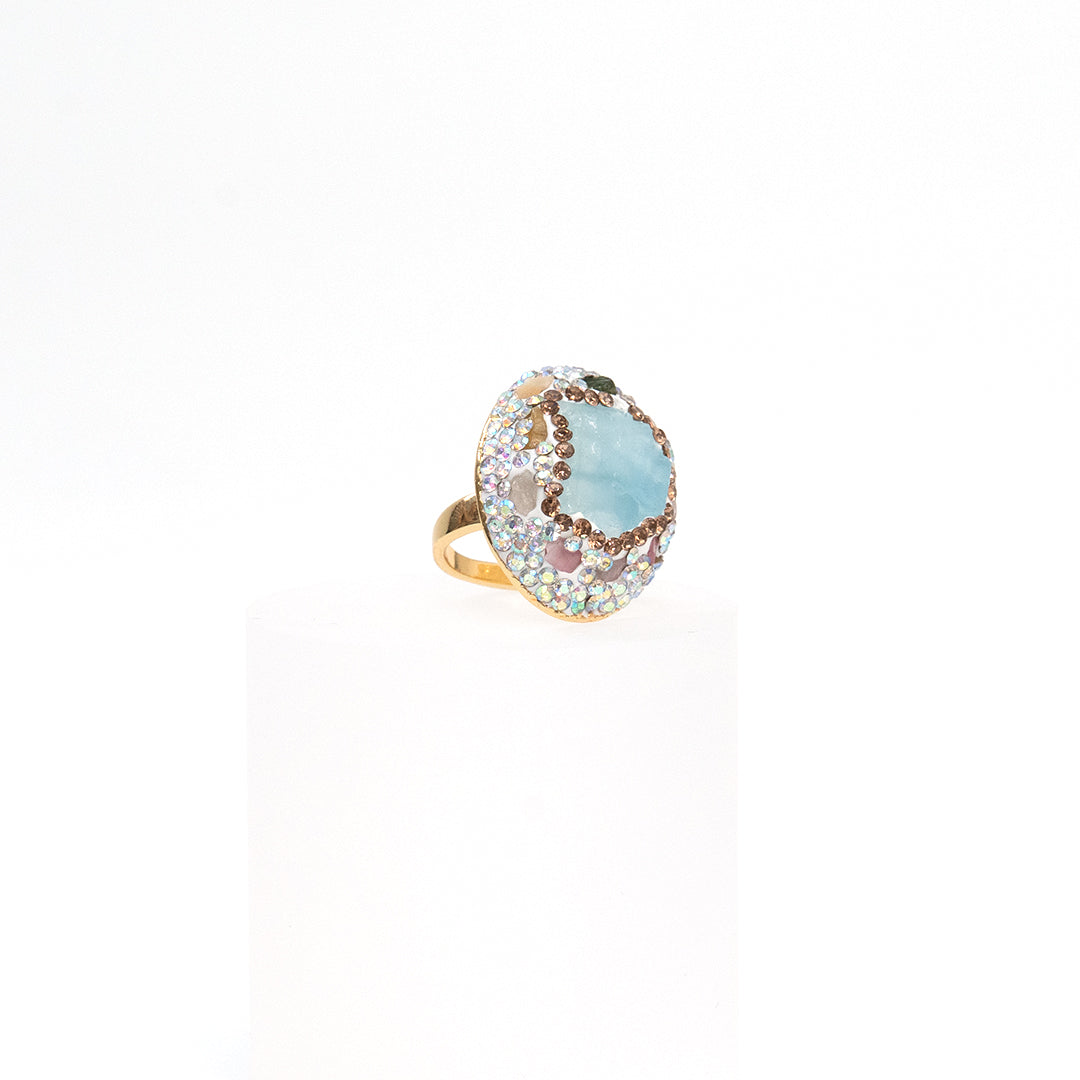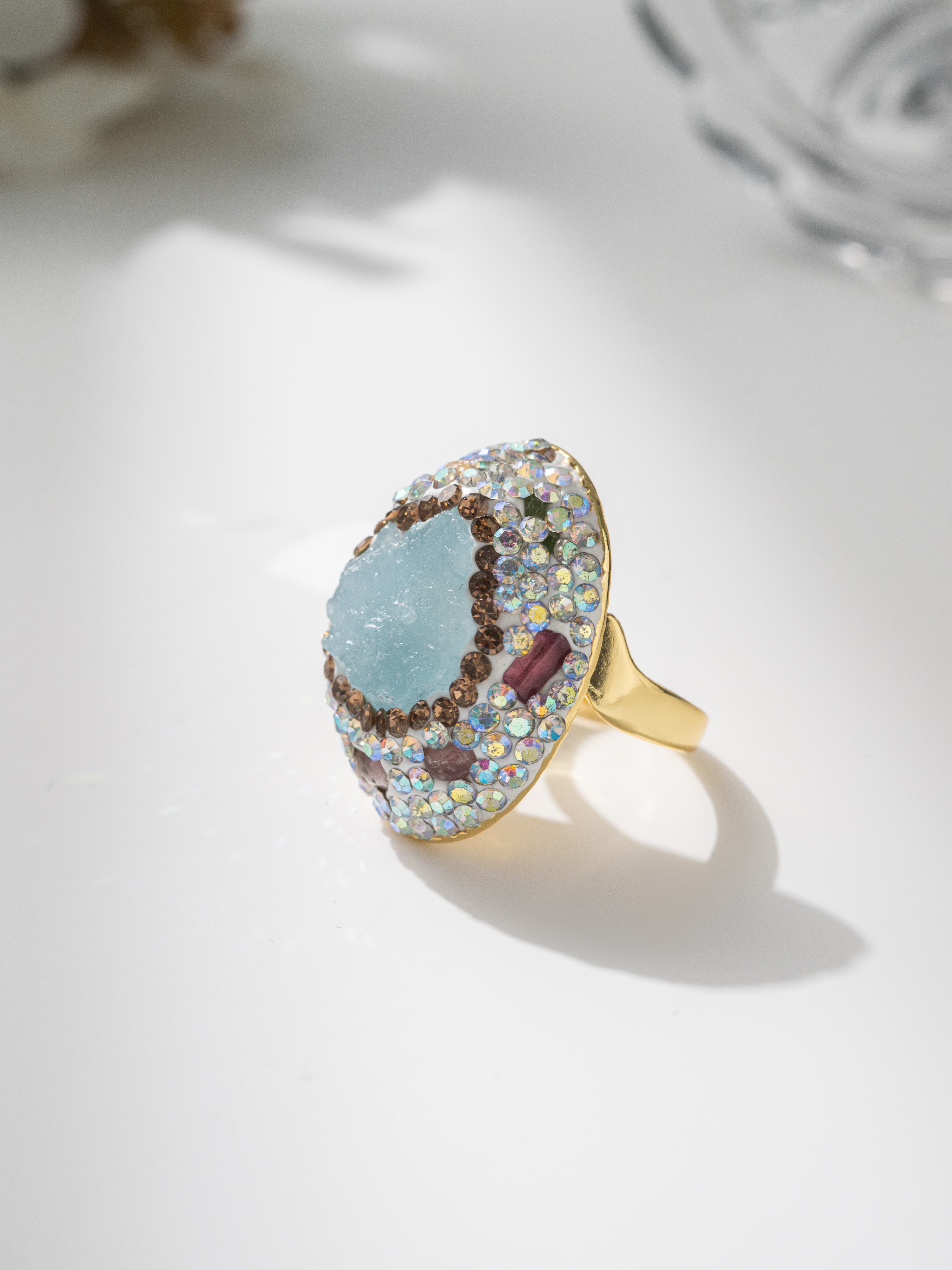 Enhance your look with this exquisite blue crystal ring. It features a shimmering natural blue crystal centerpiece with unique texture and brilliance. This elegant yet minimalist design ensures it pairs perfectly with any outfit. Each piece is crafted with genuine natural crystal, ensuring no two are alike. Elevate your style effortlessly!