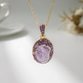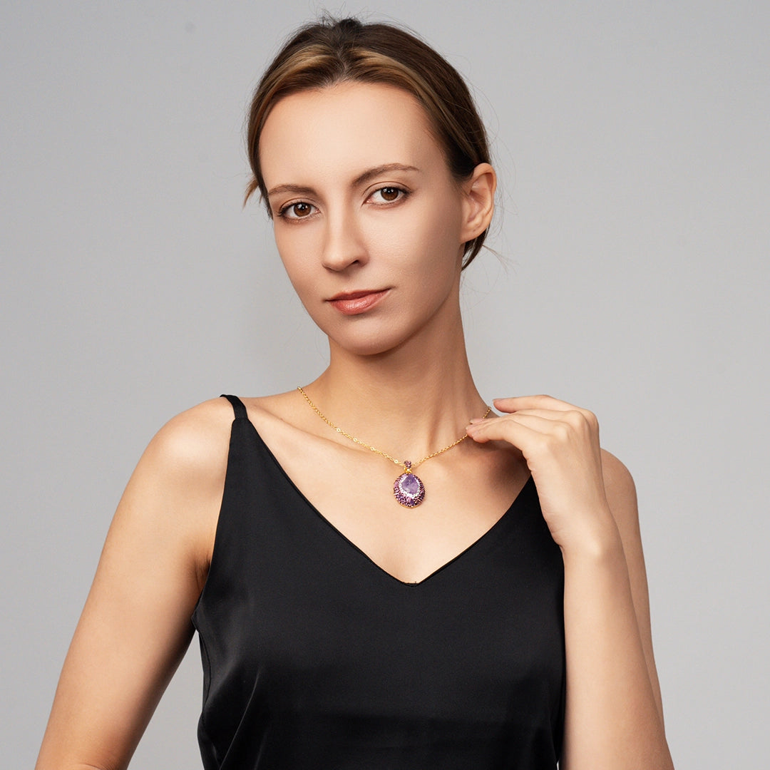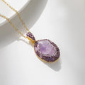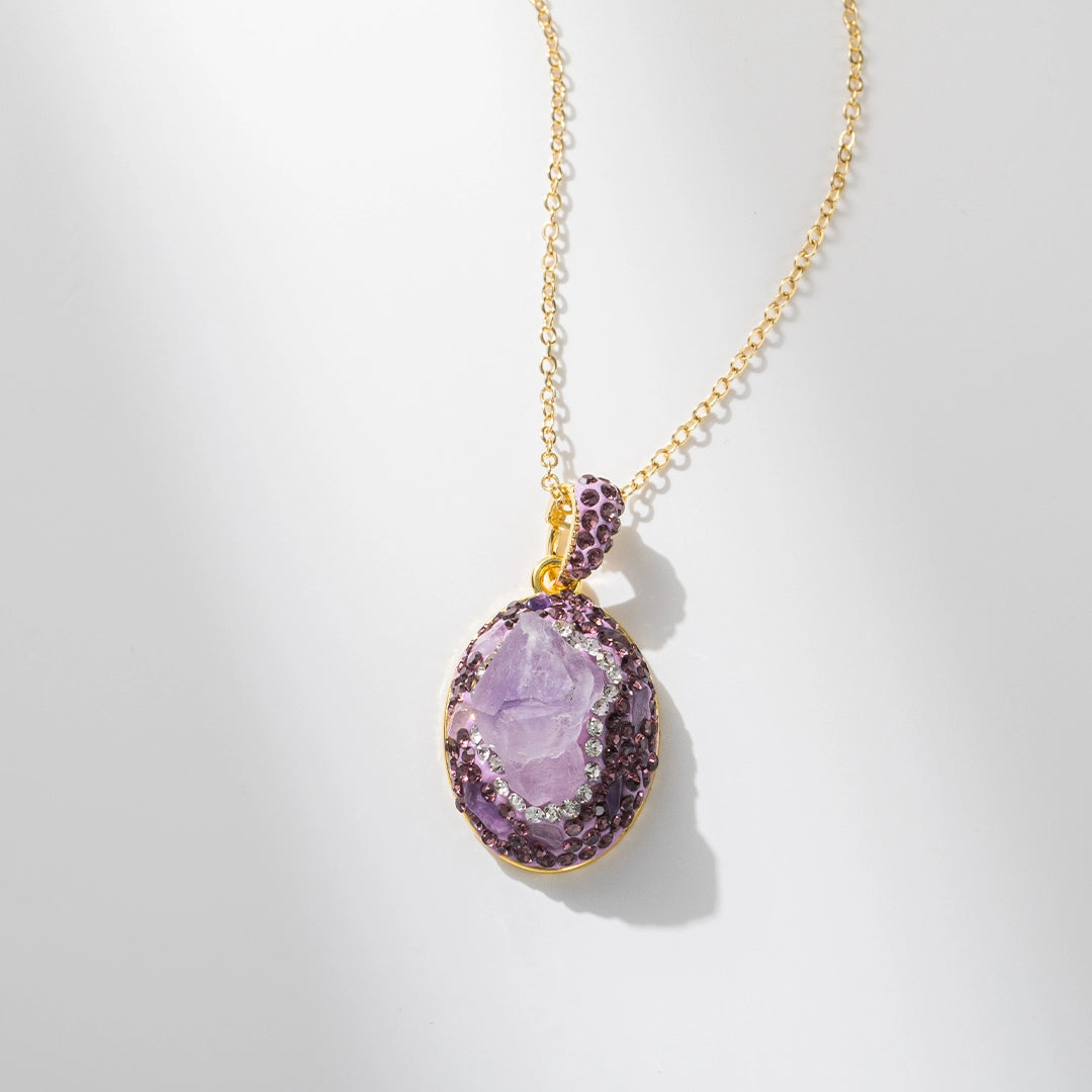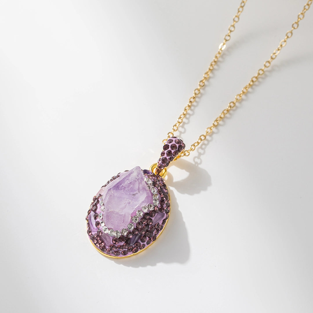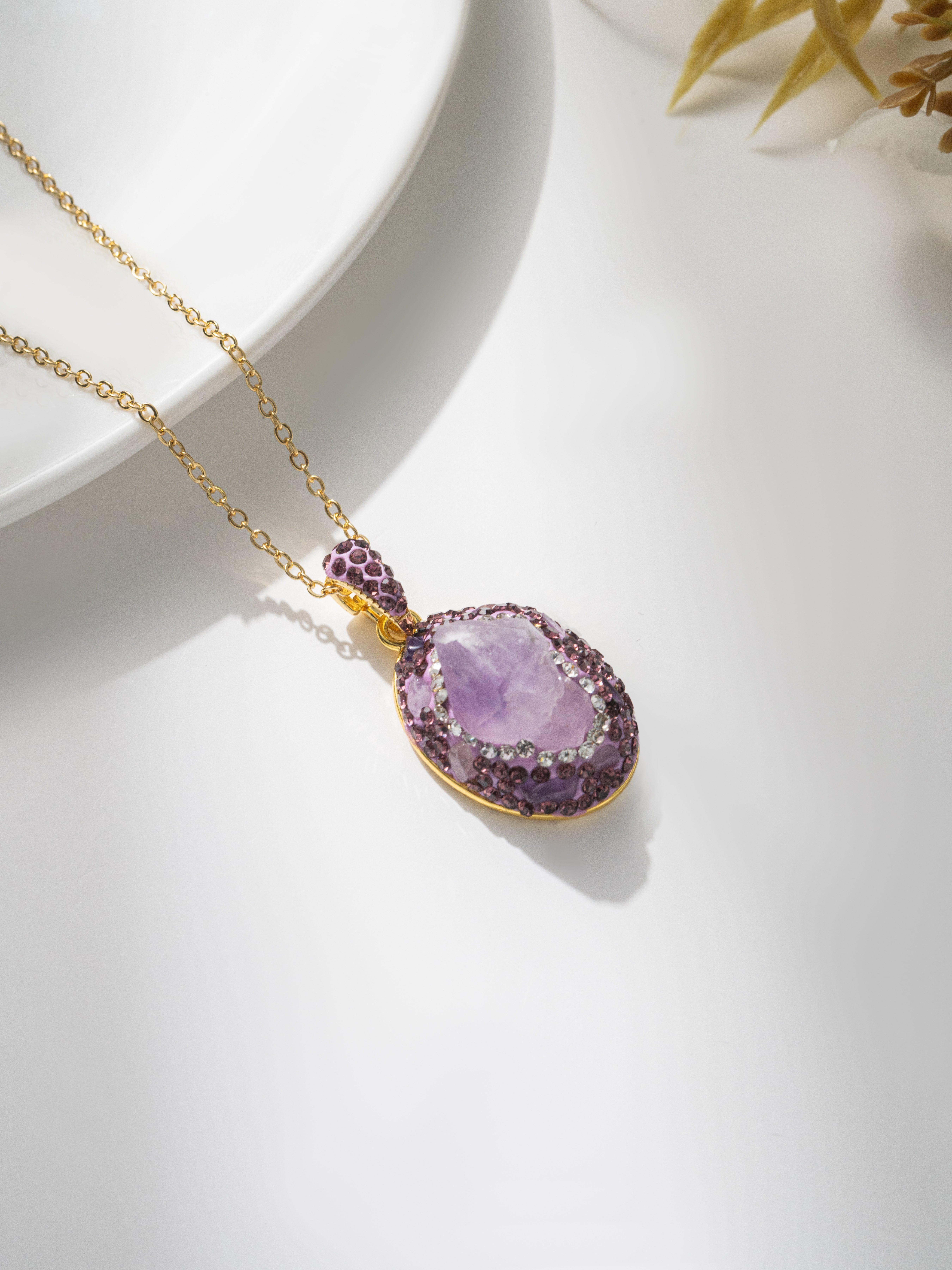 β¨ Elevate your style with this exquisite purple crystal necklace. It features a large, shimmering purple crystal at the center, surrounded by sparkling accent stones. All set on a delicate gold-toned chain, it's perfect for adding a touch of elegance to any outfit. Whether casual or formal, this piece will enhance your look effortlessly.