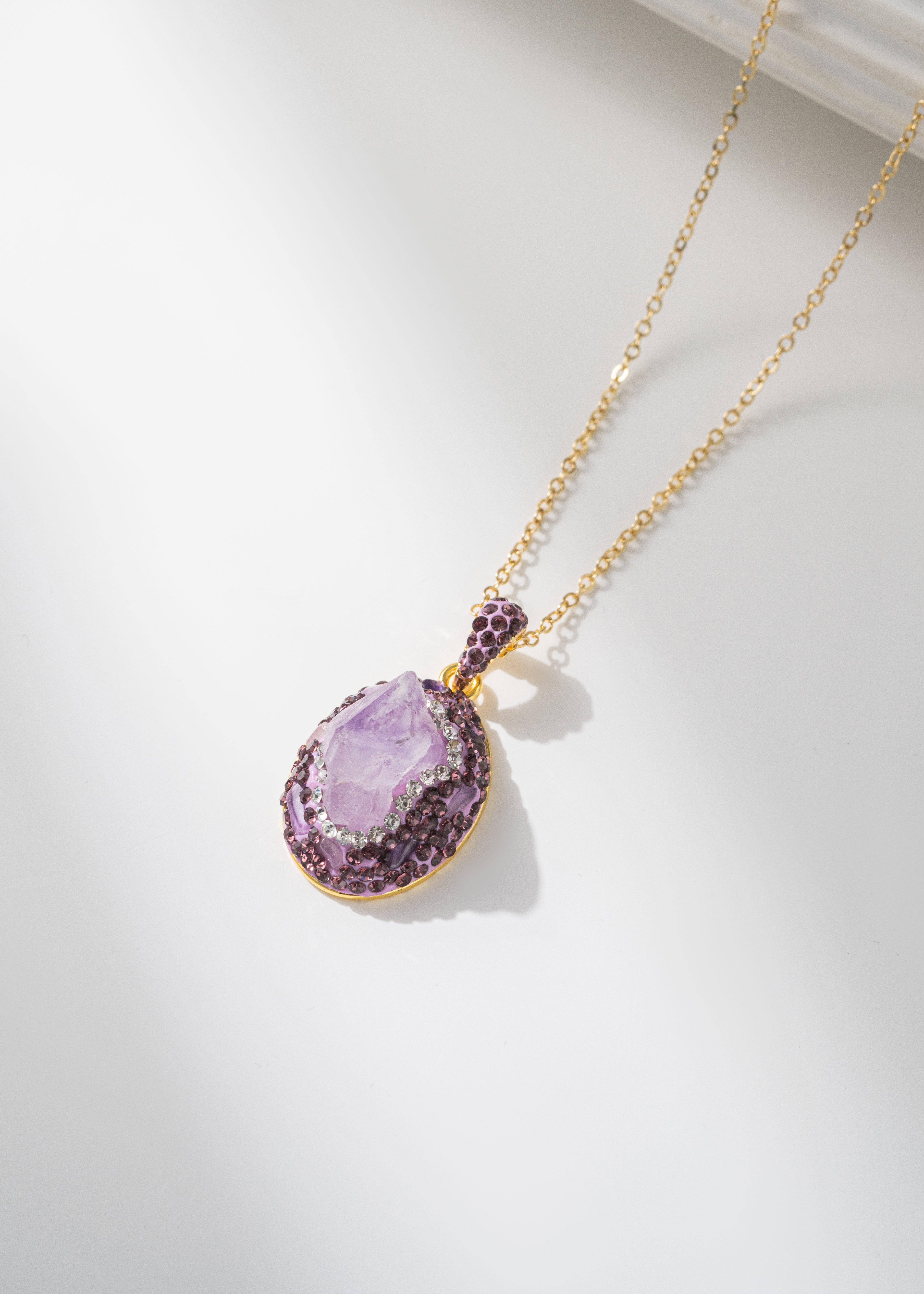 π Unique Natural Amethyst Necklace - Gold Chain